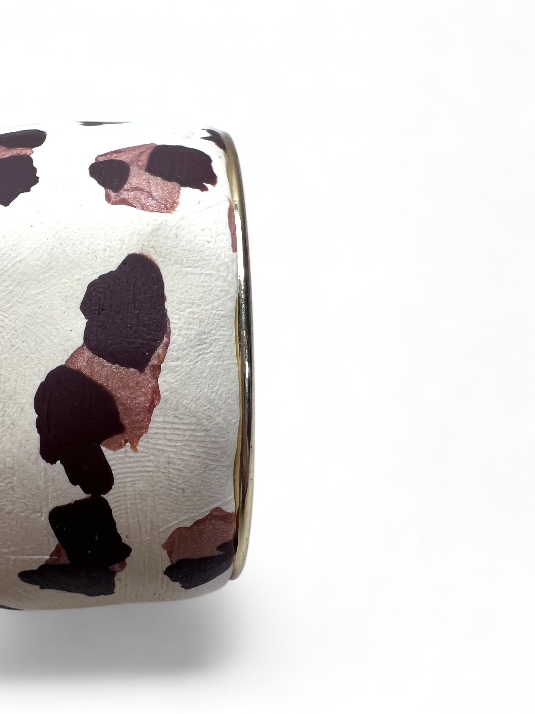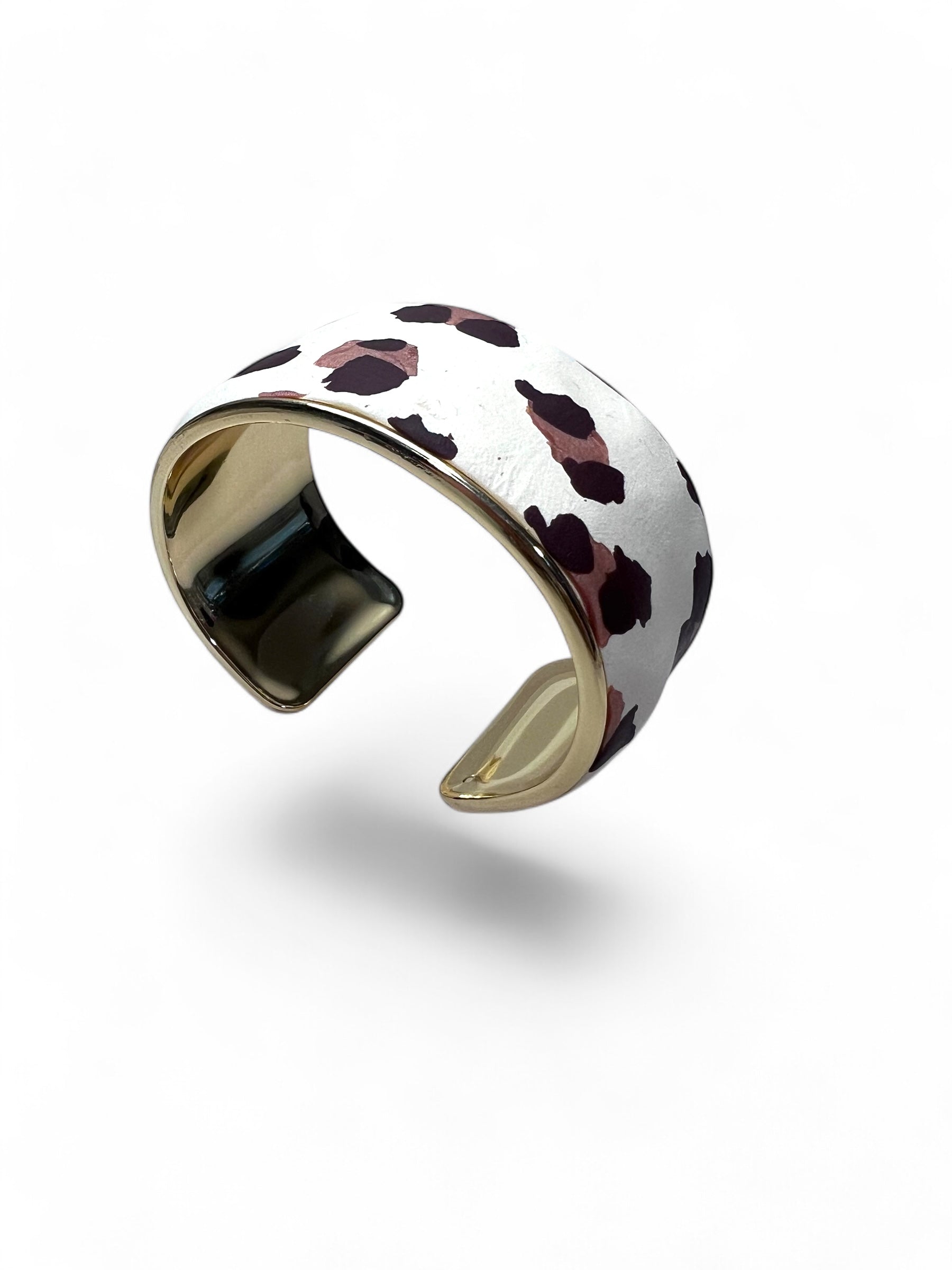 Brazalete de base dorada con aplicación de arcilla polimérica con estampado animal.